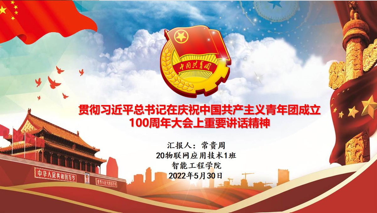 2022年5月30日下午16时,2020级物联网应用技术1班在腾讯会议组织召开以《深入学习宣传贯彻习近平总书记在庆祝中国共产主义青年团成立100周年大会上重要讲话精神》为题的主题团日活动班会,辅导员徐凯老师也参加了会议,会议由团支书常贵周同学主持,